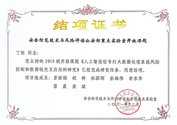公安部重点实验室结业证书